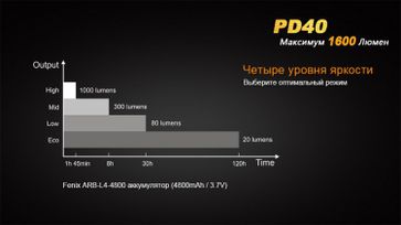 Универсальный фонарь Fenix PD40 на светодиоде Cree MT-G2 (P0) отличают компактность, легкость, функциональность и невероятная яркость!