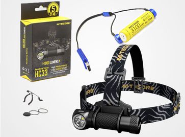 Фонарь универсальный, налобный NiteCoreHC33 на светодиоде Cree XHP35 HD, яркость 1800 люмен. Это комплект фонарика с аккумулятором и зарядным устройством OLIGHT UC.