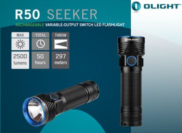 - Olight Olight R50 Seeker - мощный и компактный аккумуляторный фонарь по выгодной цене 8 500 р. руб.;