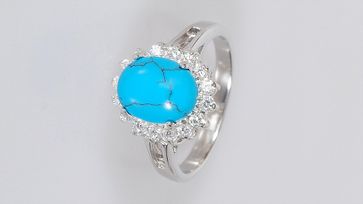 - кольцо серебро бирюза овал в цирконах в каталоге Украшения из серебра в Москве;