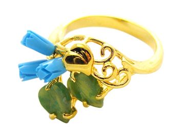 Закажите кольцо серебро позолоченное бирюза-нефрит 3 розы 2 листа сердечк у компании Lotus в Москве на портале Alloy: