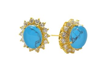 Закажите серьги серебро позолоченное бирюза овал в цирконах у компании Lotus в Москве на портале Alloy: