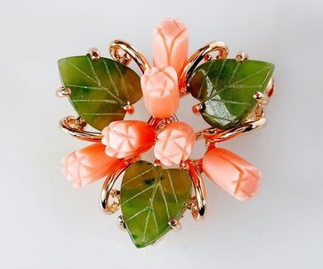 - Брошь с кораллом и нефритом "Букет" по выгодной цене 692 р. руб.;