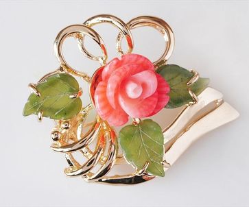 - Брошь с кораллом и нефритом "Чародейка" по выгодной цене 663 р. руб.;