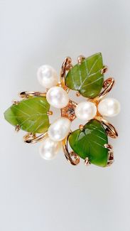 - Брошь с жемчугом и нефритом "Букет" по выгодной цене 692 р. руб.;