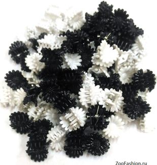 Размер 1 см. Маленький крабик в виде ромашки. Очень удобен чтобы закалывать волоски, которые выбиваются из топ-нота, и лезут в глазки. Материал пластик. None