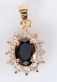 Кулон с чёрным фианитом "Малый овал в цирконах"