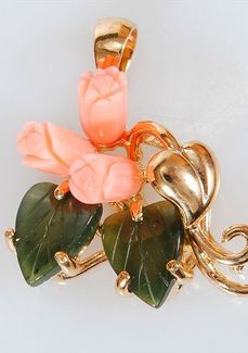 - Кулон с кораллом и нефритом "3 розы 2 листа сердечко" в каталоге Украшения из золота в Москве;