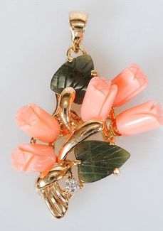 - Кулон с кораллом и нефритом "5 роз букет" по выгодной цене 510 р. руб.;