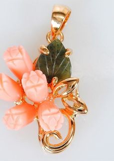 - Кулон с кораллом и нефритом "5 роз лист завиток" по выгодной цене 550 р. руб.;