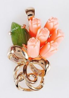 - Кулон с кораллом и нефритом "6 роз лист бант" по выгодной цене 580 р. руб.;