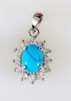 Кулон с (RH) бирюзой "Малый овал в цирконах"