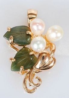 - Кулон с жемчуг-нефрит3 жемчужины 2 листа сердечко" в каталоге Украшения из золота в Москве;