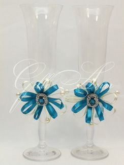 Набор украшений на свадебные бокалы Gilliann Sea Diamond GLS147 Материалы и декор: атласные ленты, бусины, декоративные элементы. Мин. заказ 500 руб.