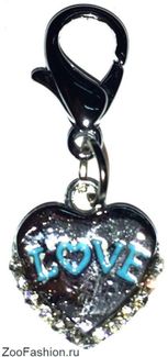 Кулончик брелок на ошейник "Love" украшен белыми стразами и надписью. Размер кулончика вместе с креплением 4см, кулончик 2см. Украшение можно использовать в качестве личной вещи на ключи. None