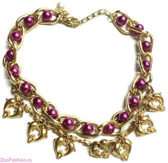 Великолепная подвеска Premium. Выполнена в лучших традициях шика и гламура. В ней сплелись золото и жемчуг. Регулируется по обхвату шеи собаки. None