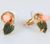 Серьги с кораллом и нефритом "1 роза 1 лист ободок"