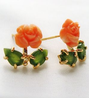 - Серьги с кораллом и нефритом "1 выпуклая роза 2 листа" по выгодной цене 272 р. руб.;