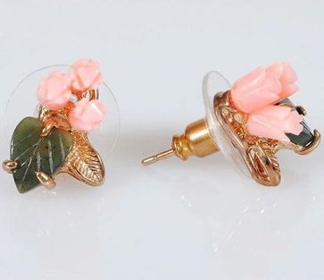 - Серьги с кораллом и нефритом "3 розы 1 лист" по выгодной цене 297 р. руб.;