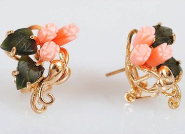 - Серьги с кораллом и нефритом "3 розы 2 листа с сердечком" по выгодной цене 895 р. руб.;