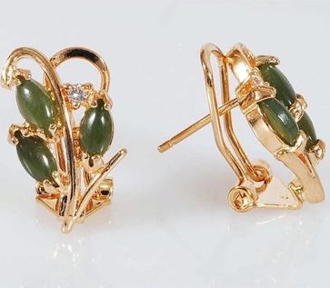 - Серьги с нефритом "3 рис+циркон" по выгодной цене 500 р. руб.;