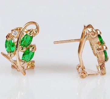 - Серьги с зелёным фианитом "3 рис+циркон" по выгодной цене 405 р. руб.;