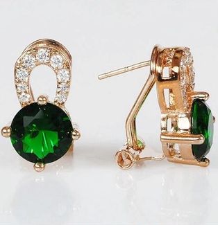 - Серьги с зелёным фианитом "Подковка" по выгодной цене 600 р. руб.;