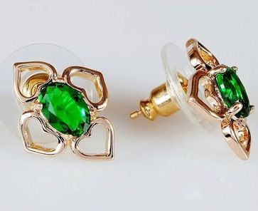 - Серьги с зелёным фианитом "Сердечки" по выгодной цене 343 р. руб.;