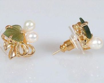 - Серьги с жемчугом и нефритом "2 жемчужины 1 лист бант" по выгодной цене 318 р. руб.;
