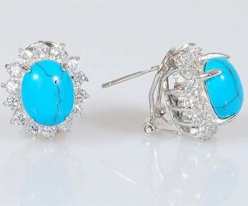 Серьги серебряные с бирюзой "Овал в цирконах"