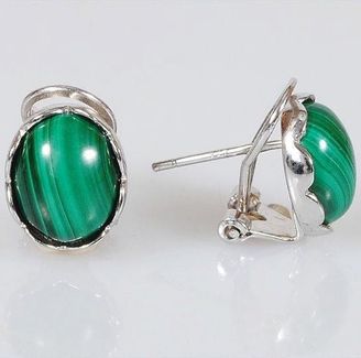 - Серьги серебряные с малахитом "Овал" по выгодной цене 1 098 р. руб.;