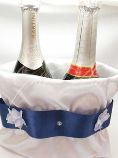 Украшение на бутылки с шампанским Gilliann Sweet GLS070 Украшение на бутылки с шампанским - часть комплекта Sweet. Сделано из белого атласа, декорировано синей лентой. На синем фоне расположились нежные белые цветочки, стразы. Материал: атлас, стразы, декоративные элементы None