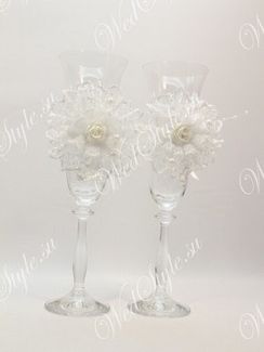 Закажите Украшение на свадебные бокалы белое, набор из 2 шт. K010302 у компании WedStyle.su - Первый свадебный Аутлет свадебных аксессуаров премиум-класса в Москве на портале Alloy: