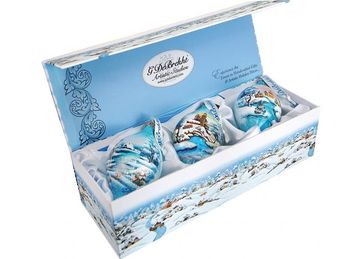 Набор "Mister Christmas", состоящий из трех елочных украшений, поможет вам создать теплую и уютную атмосферу праздника. Украшения изготовлены из стекла. Украшения оснащены текстильными ленточками, благодаря которым их можно повесить в любом месте. Набор упакован в красочную подарочную шкатулку. Благодаря специальным выемкам предметы набора надежно крепятся внутри шкатулки. Новогодние украшения всегда несут в себе волшебство и красоту праздника. Создайте в своем доме атмосферу тепла, веселья и радости, украшая его всей семьей. None Есть доставка.