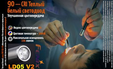 Фонарь Fenix LD05 V2.0 — новинка 2018 года. Этот карманный, светодиодный фонарик выполнен стилизованным под ручку (на английском звучит как PENLIGHT). Такой дизайн фонаря пришелся по вкусу офицерам вооруженных сил и полиции, медперсоналу и сотрудникам скорой помощи. Светодиодный фонарик Fenix LD05 V2 выполнен стилизованным под авторучку, такой дизайн фонаря пришелся по вкусу не только военным, использующим LD05 V2 с планшетом, для подсветки карт и документов. Фонарь every day carry Феникс LD05 V2.0 часто приобретают врачи, которым тоже не помешает естественная цветопередача его обновленной в 2018 году версии. А еще, этот светодиодный фонарик, поможет найти фальшивки, среди денег и документов, благодаря ультрафиолетовому излучению 365 нм