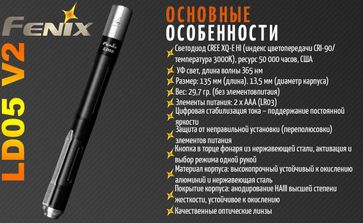 - Fenix Карманный фонарь в форме авторучки Fenix LD05 V2.0 — Новинка 2018 года по выгодной цене 3 200 р. руб.;