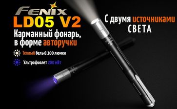 - Fenix Карманный фонарь в форме авторучки Fenix LD05 V2.0 — Новинка 2018 года в каталоге Ультрафиолетовые лампы в Москве;