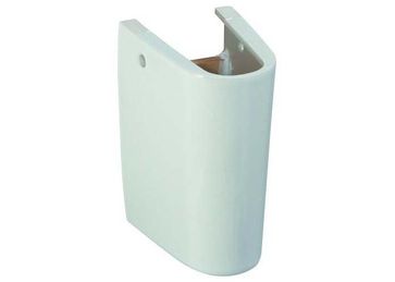 Пьедестал несёт, как опорную так и декоративную функцию. В нём размещаются подводка смесителя и сифон. None