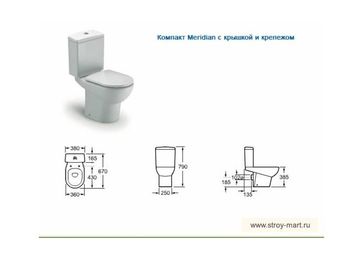 - Roca (Рока) Компакт Meridian с крышкой и крепежом 342350001 341355000 801360004 в каталоге Унитазы в Москве;