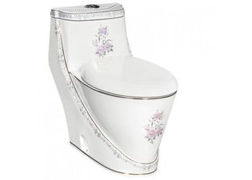 Закажите Унитаз белый с рисунком моноблок с микролифтом, Lotus, вертикальный выпуск, Laguraty у компании Сантехника плюс в Москве на портале Alloy: