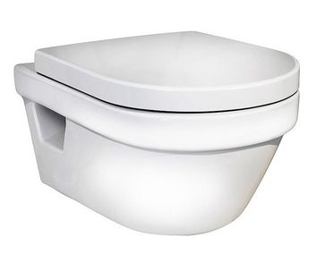 Унитаз выпускается в белом традиционном цвете овальной формы. Подвесной тип модели предусматривает простоту монтажа и подключения канализационных труб и водных магистралей.
