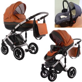 Стильная кожаная коляска с поворотными колесами и множеством бонусов. В комплекте коляски: большая люлька, прогулочный блок, автокресло-переноска, подстаканник, сумка, дождевик, москитка, чехлы на колеса, утепленная муфта для рук и шарф-накидка! None Страна производства: Польша Есть доставка.