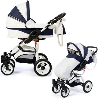 Комбинированная белая эко-кожа с тканевыми вставками (с набивным рисунком), поворотные надувные колеса, большай люлька с деревянным дном, европейское качество. В комплекте коляски: большая утепленная люлька (80х38 см), прогулочный блок, конверт из натурального меха (опция), сумка, дождевик, москитка, чехлы на колеса, утепленная муфта для рук и шарф-накидка! None Страна производства: Польша Есть доставка.