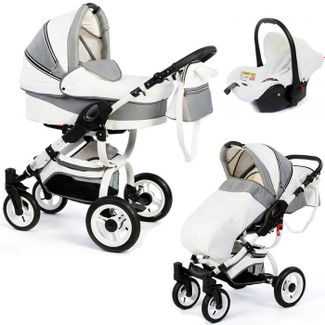 Комбинированная белая эко-кожа с тканевыми вставками (с набивным рисунком), поворотные надувные колеса, большай люлька с деревянным дном, европейское качество. В комплекте коляски: большая утепленная люлька (80х38 см), прогулочный блок, автокресло-переноска, конверт из натурального меха (опция), сумка, дождевик, москитка, чехлы на колеса, утепленная муфта для рук и шарф-накидка! None Страна производства: Польша Есть доставка.