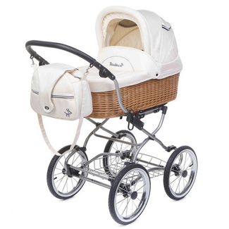 Кожаная (эко-кожа) элитная европейская ретро-коляска с плетеной люлькой (натуральная лоза) и очень богатой комплектацией. На выбор классическая рама или с поворотными колесами. В комплекте: большая утепленная люлька (80х38 см), большие надувные колеса (35 см), конверт из натурального меха (опция), сумка, утепленная муфта для рук, дождевик, москитная сетка, чехлы на колеса и шарф-накидка! None Страна производства: Польша Есть доставка.