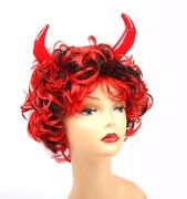 Завершающим элементом вашего сногсшибательного наряда должна стать, конечно же, прическа. Тем, кого природа не наградила пышной шевелюрой для причесок, и тем, кому просто лень что-то придумывать - пригодится яркий красный парик с рогами. Надел и готово!