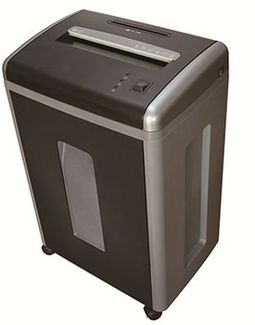 Уничтожитель бумаги (шредер), размер фрагмента 2x6 мм, чёрный/серебро верх, секретность 4, листов 6, корзина 22 литра, CD, кредит. карты, вес 12,5 кг None