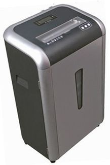 Уничтожитель бумаги (шредер), размер фрагмента 2x10 мм, чёрный/серебро дверь контур, секретность 4, листов 17, корзина 26 литра, CD, кредит. карты, вес 21 кг None