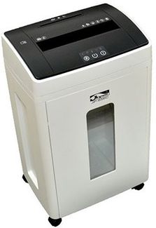 Уничтожитель бумаги (шредер), размер фрагмента 2х10 мм, белый корпус/чёрный верх, секретность 4, листов 10, корзина 22 литра, CD, кредит. карты, вес 12,5 кг None