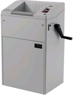 Уничтожитель бумаги (шредер), размер фрагмента 0,8x5 мм, секретность 6, листов 5-6, корзина 85 литров, дополнительный ручной привод, вес 52,0 кг None